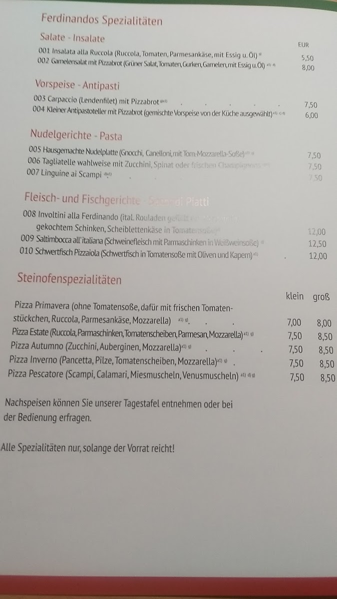Welcome to Da Ferdinando - Wilhelmstraße 1, a delightful haven for Italian cuisine in Schwarzenbach an der Saale. Nestled at Wilhelmstraße 1, this charming restaurant boasts an enticing menu that captures the essence of authentic Italian flavors. Guests rave about their Steinoffenpizza, with its perfectly crispy crust and generous toppings, making it a crowd favorite at just 9€. The Margherita pizza and Schweine Schnitzel have also garnered glowing reviews for their rich taste and exceptional preparation.